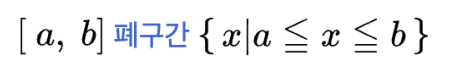 ※ 참고 - ( 와 ) 는 해당요소를 포함하지 않는 구간, [ 와 ] 는 해당 요소를 포함한다는 수학적 기호