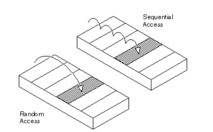 - 데이터를 저장된 순서대로 검색하는 순차적 접근(sequential access)