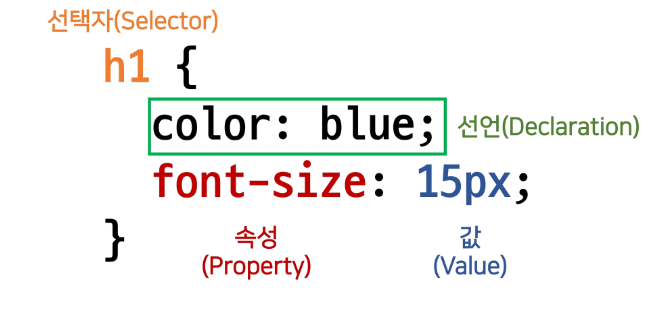 - 값 (Value) : 어떻게 스타일 기능을 변경할지 의미