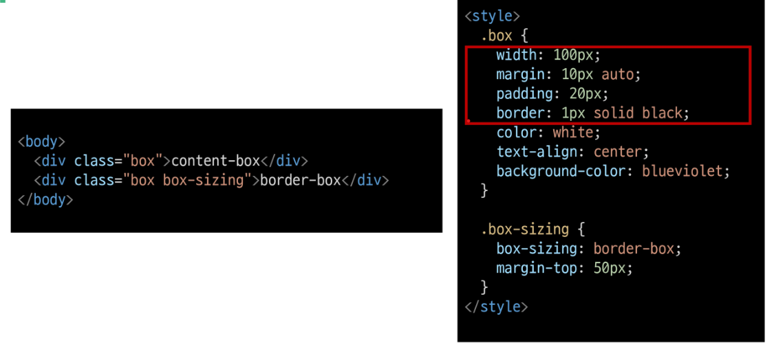 - 다만 우리가 생각하는 것은 border까지의 너비, 즉 보라색 네모 자체의 너비를 100px로 보는 것을 원한다.