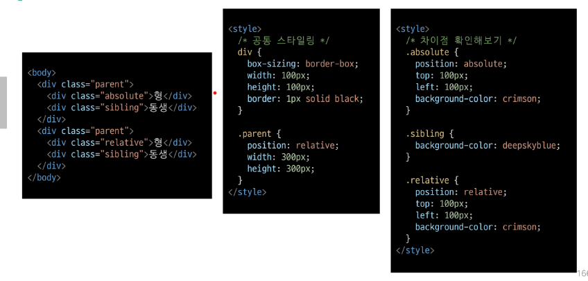 - relative의 경우 실제 위치가 그대로 이기 때문에 normal flow에 따라 형의 왼쪽에 동생이 온다.