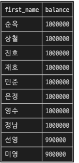 계좌 잔고가 가장 많은 10명의 이름과 계좌 잔고 조회하기
