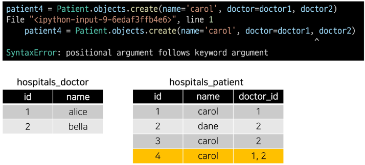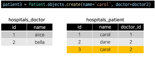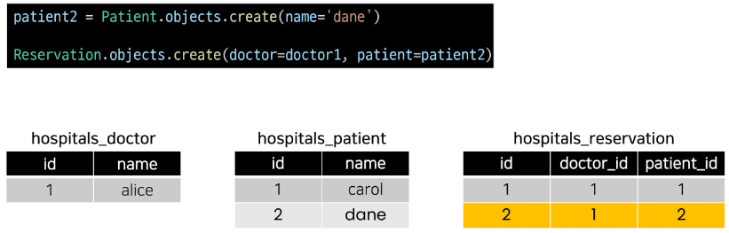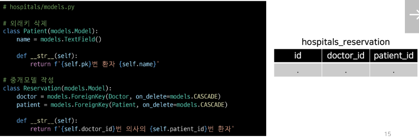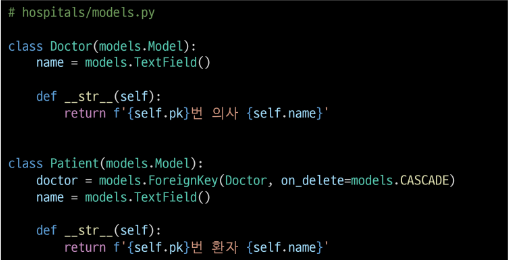 - 지금까지 배운 N:1 관계를 생각해 한 명의 의사에게 여러 환자가 예약할 수 있다고 모델 관계를 설정