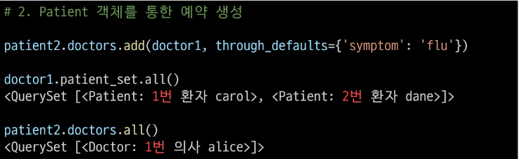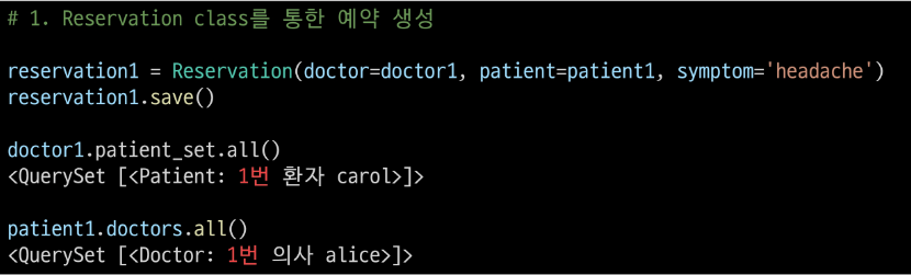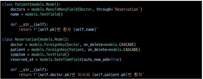 - 예약 모델은 의사와 환자에 각각 N:1 관계를 가짐