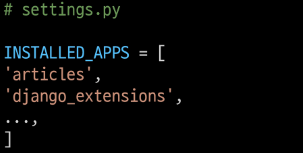 pip install django-extensions # Django 확장 프로그램 모음으로 shell_plus, graph model 등 다양한 확장 기능 제공