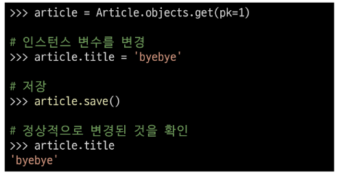 - 수정하고자 하는 article 인스턴스 객체를 조회 후 반환 값을 저장