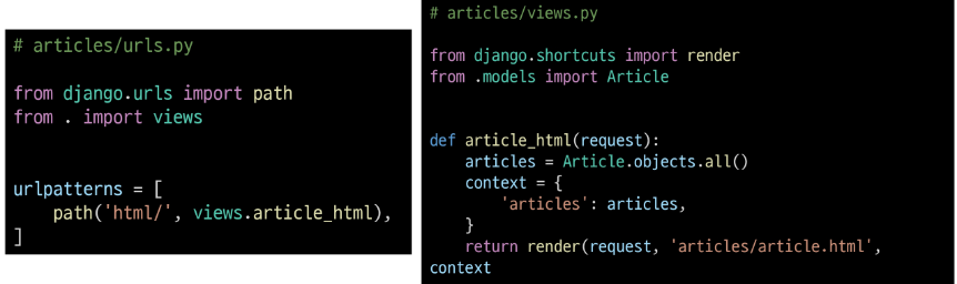 - Django는 더 이상 Template 부분에 대한 역할 담당 x