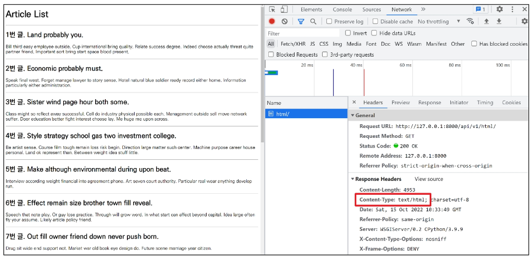 - 현재까지의 Django로 작성한 서버는 사용자에게 페이지(html)만 응답하고 있었음
