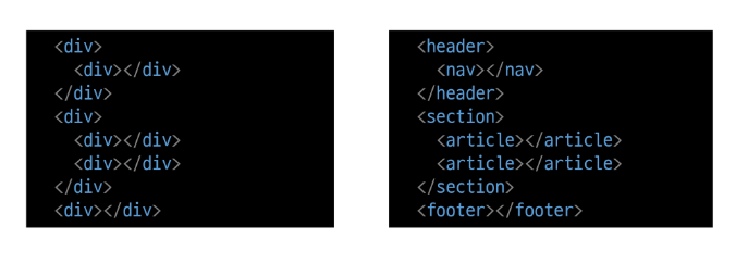 HTML5에서는 기존에 단순히 콘텐츠의 구획을 나타내기 위해 사용한 div 태그를 대체하여 사용하기 위해 의미론적 요소를 담은 태그들이 추가되었다
