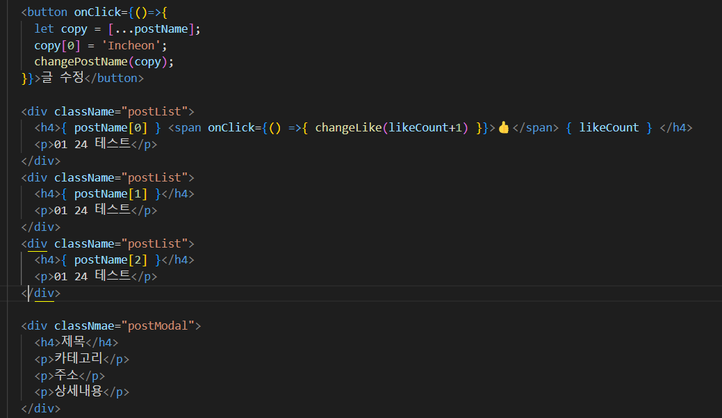 | [React] 레이아웃 만들 때 쓰는 JSX 문법 (0) | 2023.01.24 |