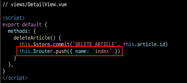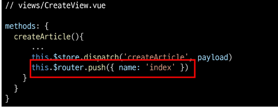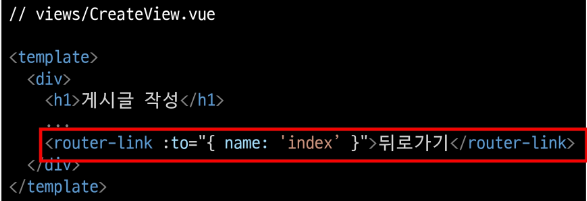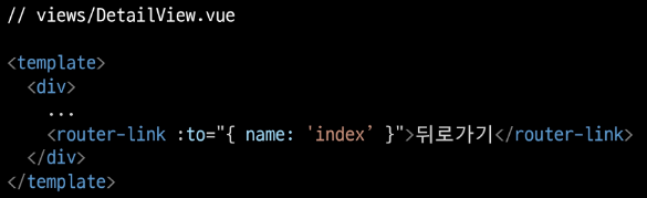 - $router.push와 마찬가지로 name을 이용하여 이동할 수 있음