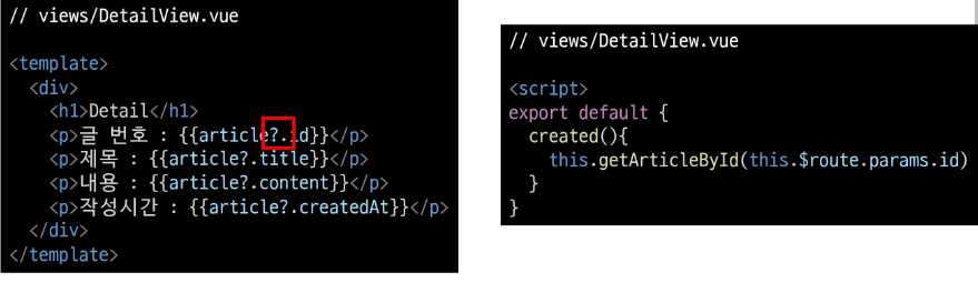 - optional chaining(?.)을 통해 article 객체가 있을 때만 출력되도록 수정