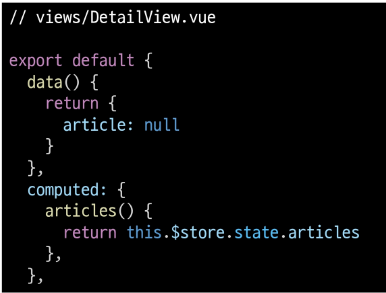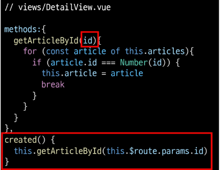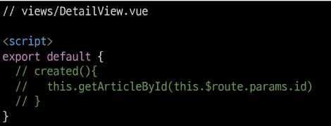 - created lifecycle hook을 통해 인스턴스가 생성되었을 때 article을 가져오는 함수 호출