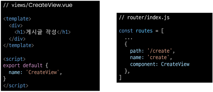 - IndexView 컴포넌트에 게시글 작성 페이지로 이동하는 링크 추가