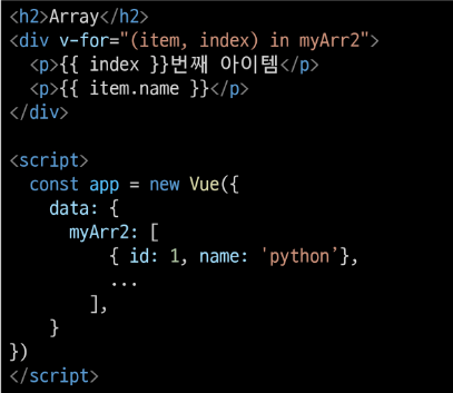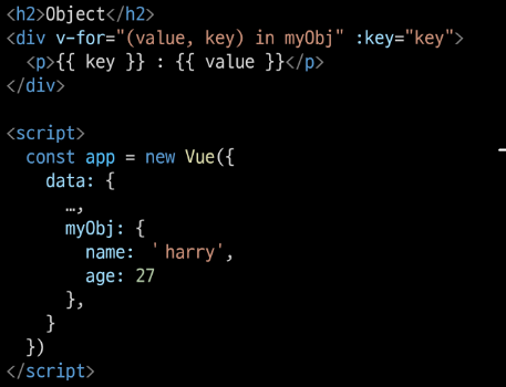 - 주로 v-for directive 작성 시 사용