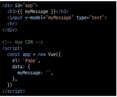 - Vue data 변경 시 v-model로 연결된 사용자 입력 element에도 적용