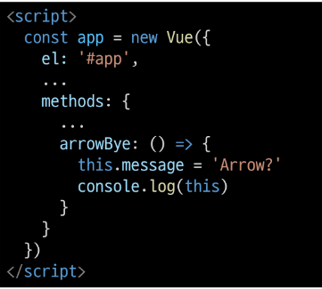 - 메서드를 정의 할 때, Arrow Function을 사용하면 안 됨