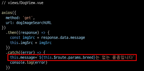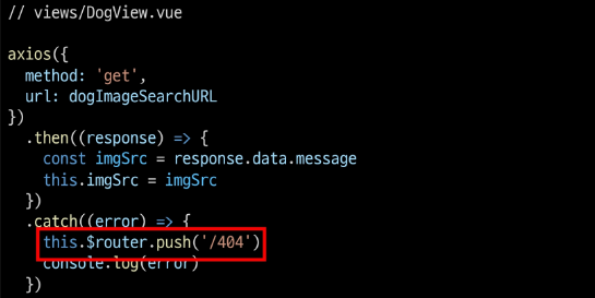 - 이전처럼 메세지를 바꿀수도 잇지만 axios 요청이 실패할 경우 404 페이지로 이동 시킬 수도 있음