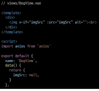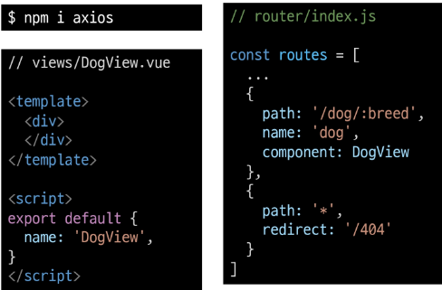 - Axios 설치 - DogView 컴포넌트 작성 - routes에 등록