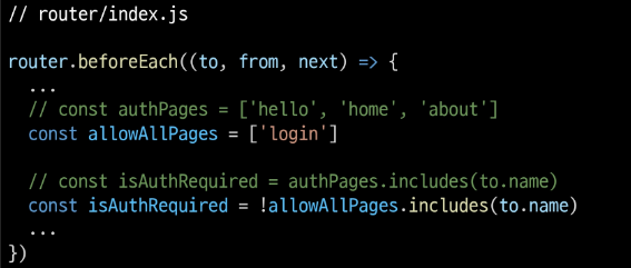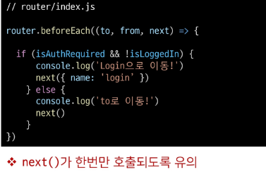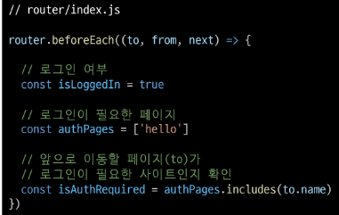 - router/index.js에 router.beforeEach()를 사용하여 설정