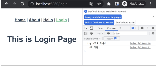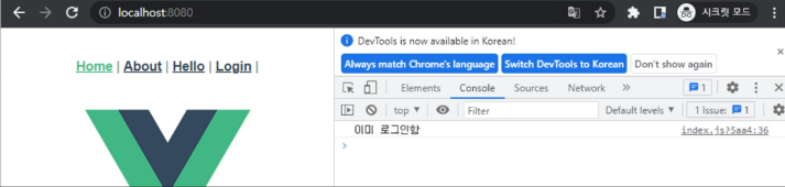 - Login을 제외한 다른 페이지로 이동하면 라우터 가드를 따로 설정해주지 않았기 때문에 라우터 가드가 동작하지 않음