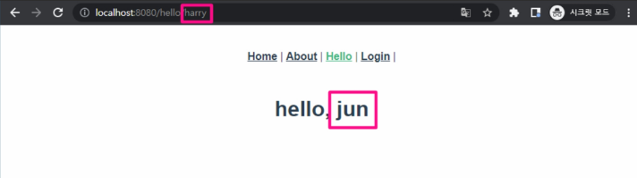 - navbar에 있는 Hello를 눌러 harry에게 인사하는 페이지로 이동