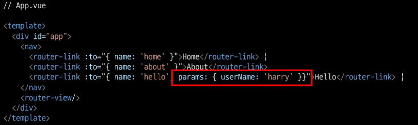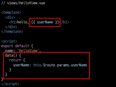 - `$route.params` 로 변수에 접근 가능