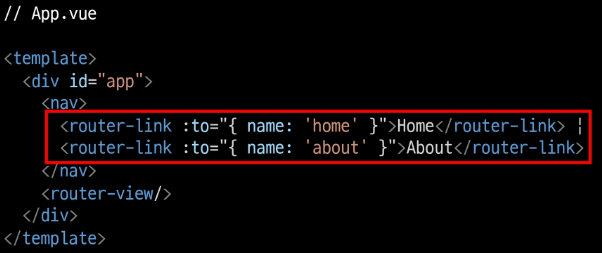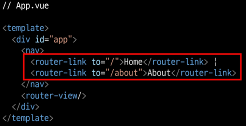 - ex) App 컴포넌트 내부의 AboutView & HomeView 컴포넌트