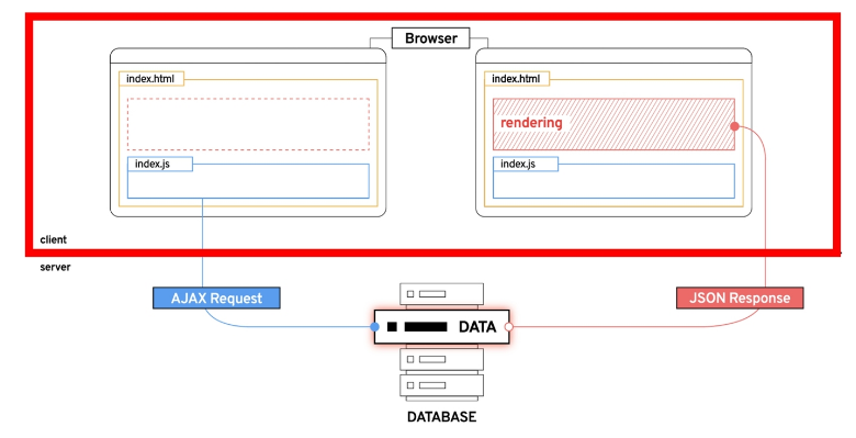 - 즉, 서버에서 모든 내용을 렌더링 하나의 HTML 파일로 제공