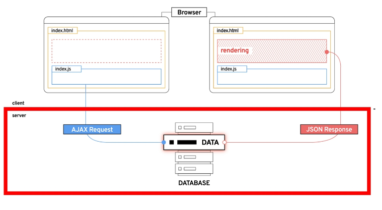 - 사용자의 요청에 적합한 data를 server에 요청하여 응답 받은 결과로 적절한 화면을 구성